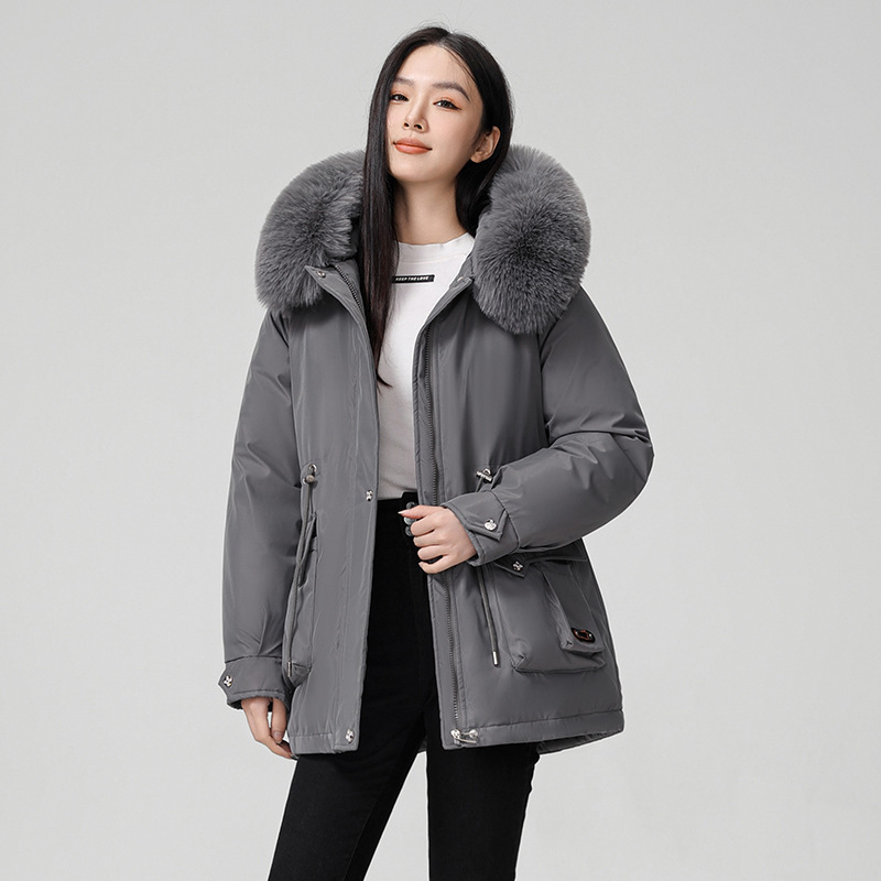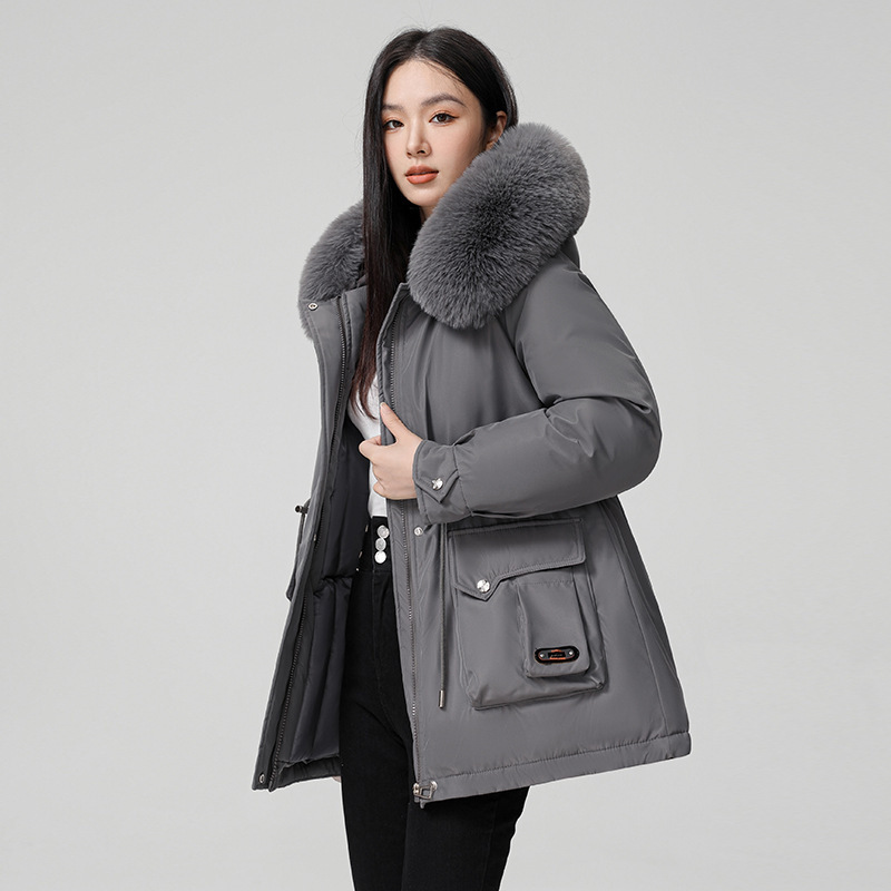 Large Fur Collar Coat Mid-length Thickened Cotton Jacket