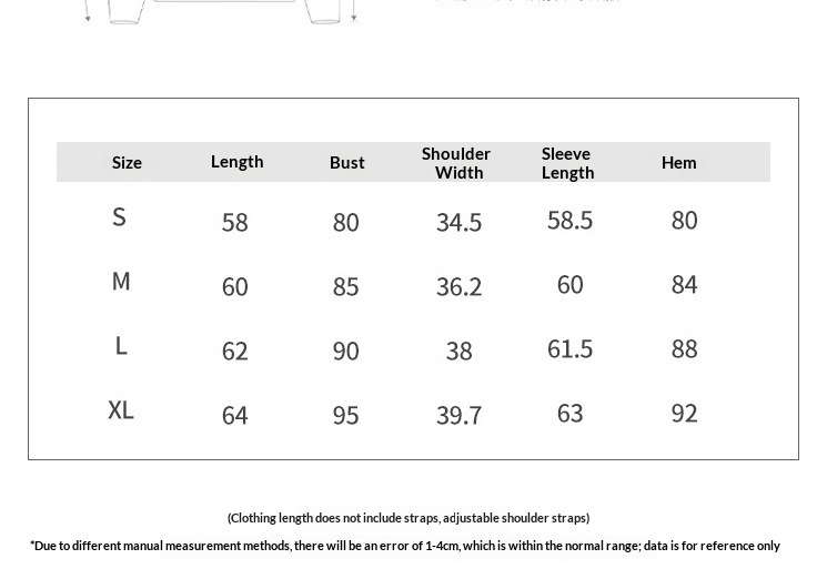 Note: 1. Asian sizes are 1 to 2 sizes smaller than European and American people. Choose the larger size if your size between two sizes. Please allow 2-3cm differences due to manual measurement. 2. Please check the size chart carefully before you buy the item, if you don’t know how to choose size, please contact our customer service. 3.As you know, the different computers display colors differently, the color of the actual item may vary slightly from the following images.